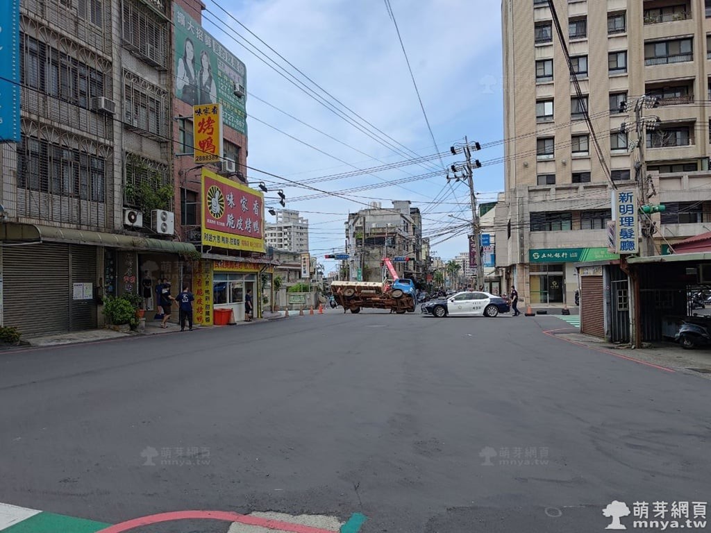 楊梅市區貨車傾倒壓馬路 警消到場管制交通