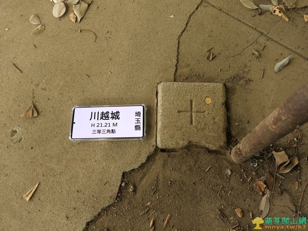 方塊鴨 ﹝埼玉縣川越市﹞ 川越城 標高21.21公尺 三等三角點 三角點位於川越城跡內,靠近三芳野神社的土丘上,於涼亭的地基上僅露出頂部十字,涼亭年久失修有倒塌的風險。 文章記錄 : https://mnya.tw/k3/word/2017.html